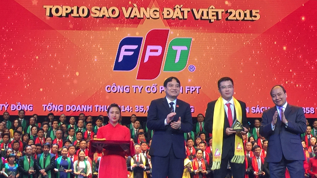 Lễ trao Giải thưởng Sao Vàng Đất Việt năm 2015 diễn ra tại Trung tâm Hội nghị Quốc Gia (Hà Nội) vào sáng nay (4/10) với sự tham gia của hơn 200 doanh nghiệp uy tín ở nhiều lĩnh vực. Là đại diện duy nhất của ngành ICT có tên trong Top 10 năm nay, FPT tiếp tục khẳng định vị trí là một trong những công ty CNTT – viễn thông hàng đầu Việt Nam.
