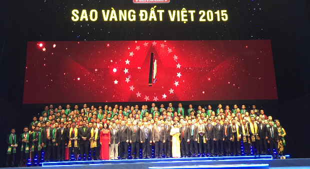 Các doanh nghiệp được vinh danh trong Sao Vàng Đất Việt 2015. Ảnh: Hợp Trang |
