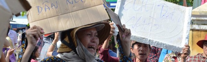 Người dân chợ Phú Hậu qùy gối phản đối di dời chợ