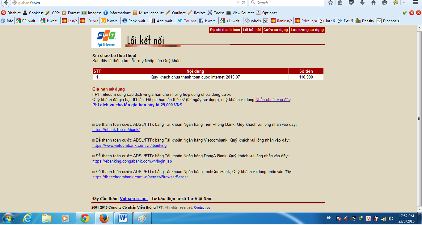 Hướng dẫn gia hạn sử dụng mạng FPT khi bị khóa